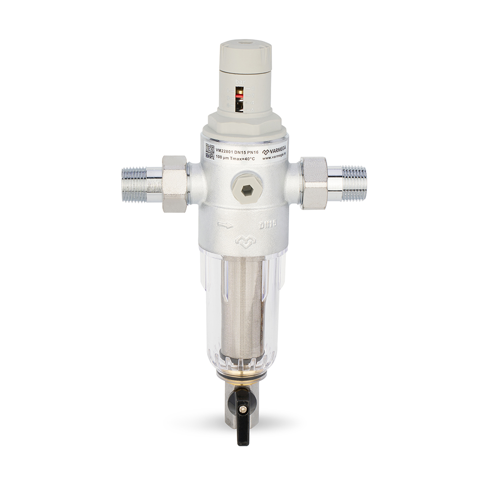 Комбинированные промывные фильтры Varmega сочетают в себе сразу два устройства -сетчатый фильтр прямой промывки и редуктор давления. Фильтр предназначен для предварительной фильтрации воды от различных механических примесей, он отлично задерживает ржавчину, песок, окалины и другой мусор, которого очень много в воде из центрального водопровода.