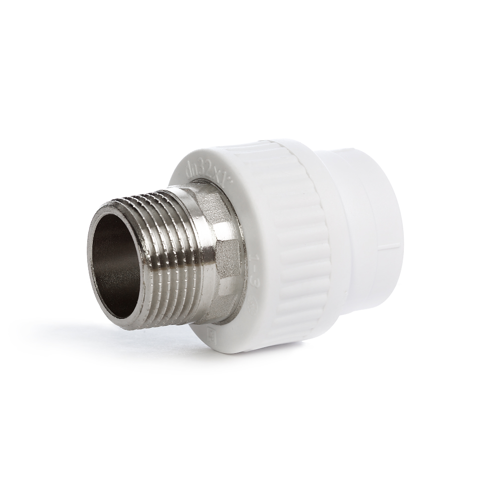 Муфта переходная комбинированная из полипропилена с наружной резьбой с одной стороны имеет раструбное термофузионное соединение под полипропиленовую трубу, а с другой стороны фитинга находится наружное резьбовое соединение. Данный фитинг позволяет присоединить к трубопроводу различные резьбовые элементы (краны, фильтры и т. п.), также дает возможность подключиться к другому типу трубопровода.
